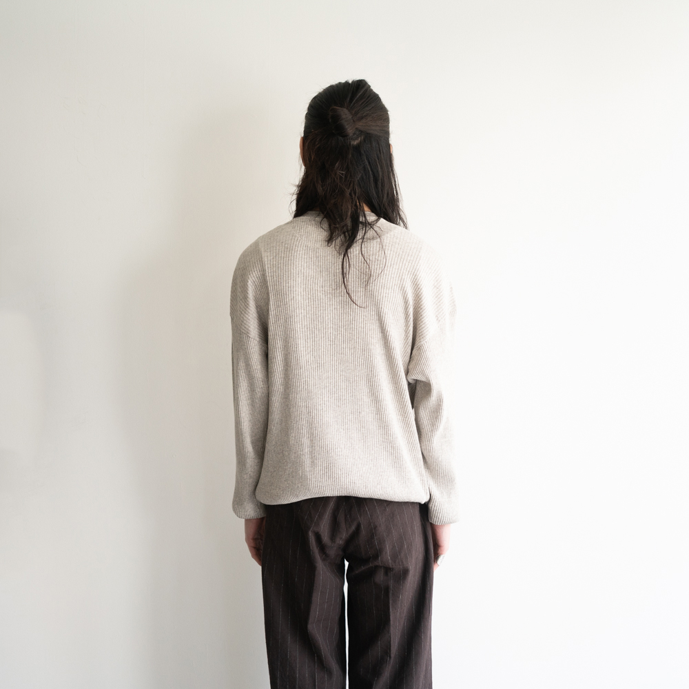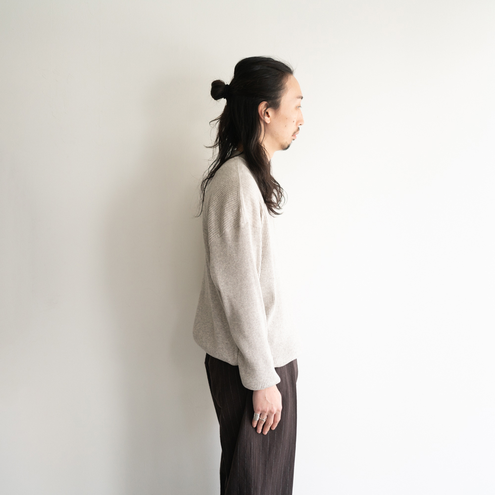 古き良き時代のアンダーウェアのカッティングライン、オリジナルで編み立てたパターンリブ、細部まで現代では珍しい意匠が盛り込まれた一枚。