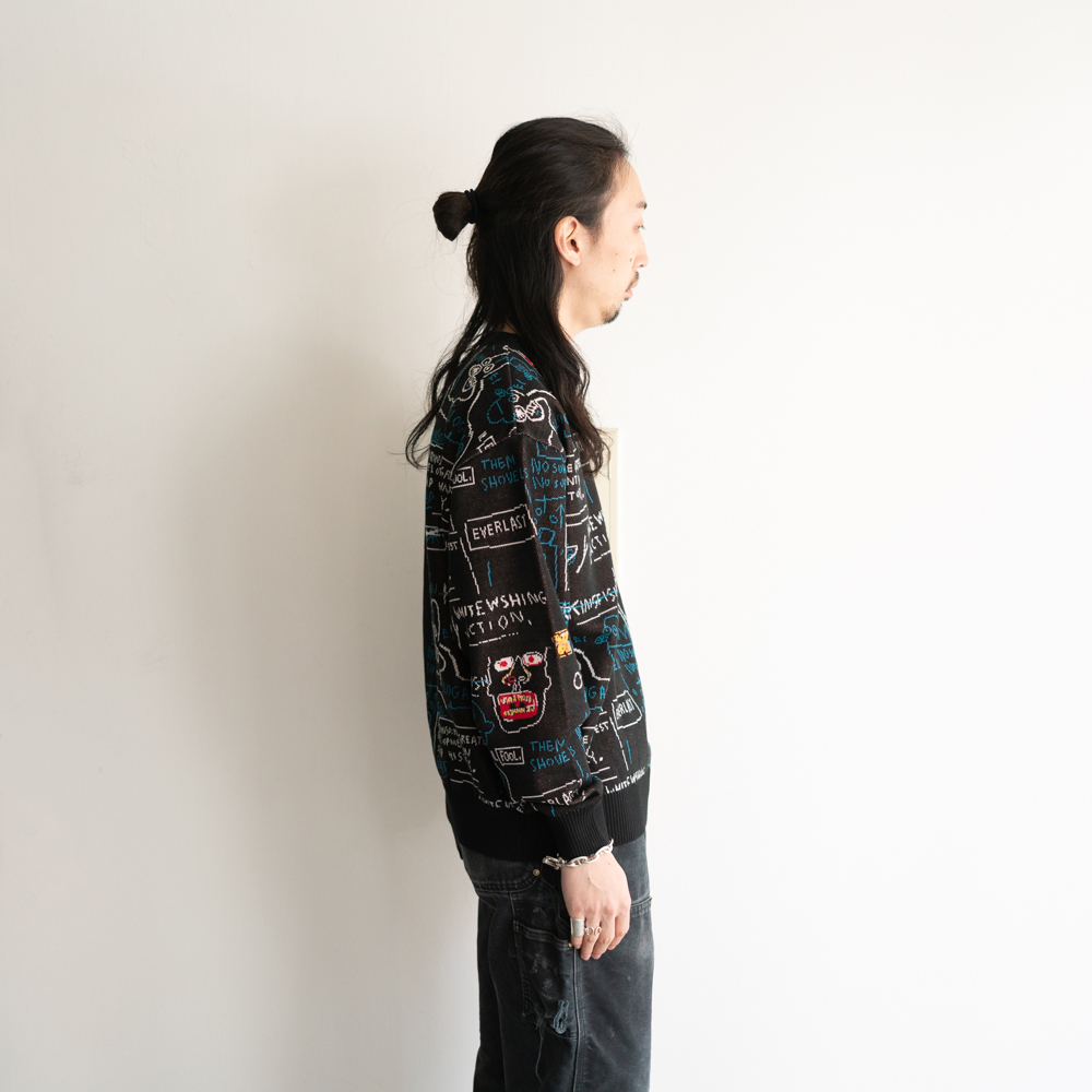 コットン/レーヨンのニットに、彼の作品を全面にジャガードで表現した大胆な1着です。